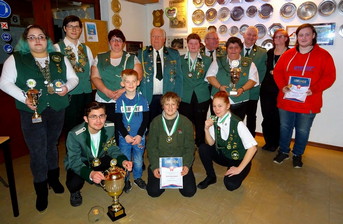 Mit Spannung wurde die Siegerehrung der Jahreswettkämpfe bei der Jugend und den Schützen erwartet. Dabei präsentierte sich die Familie Schulz in Hochform. Sie sicherten sich zum dritten Mal den Familienpokal (und dürfen diesen nun behalten). Lucas Schulz errang den großen Jugendwanderpokal und Anja Schulz den Doenhauser Cup (Weitere Platzierung am Ende des Berichtes). Dieter Schimanski, als 2. Kreisvorsitzender, zeichnete im Anschluss langjährige und verdiente Mitglieder aus.