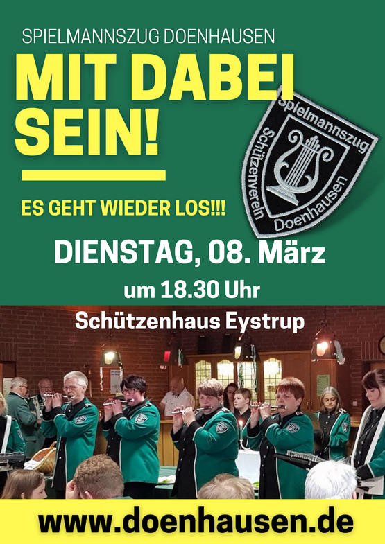 Ab dem 8. März um 18.30 Uhr sind sie wieder zu hören - die Musiker des Spielmannszuges Doenhausen. In
