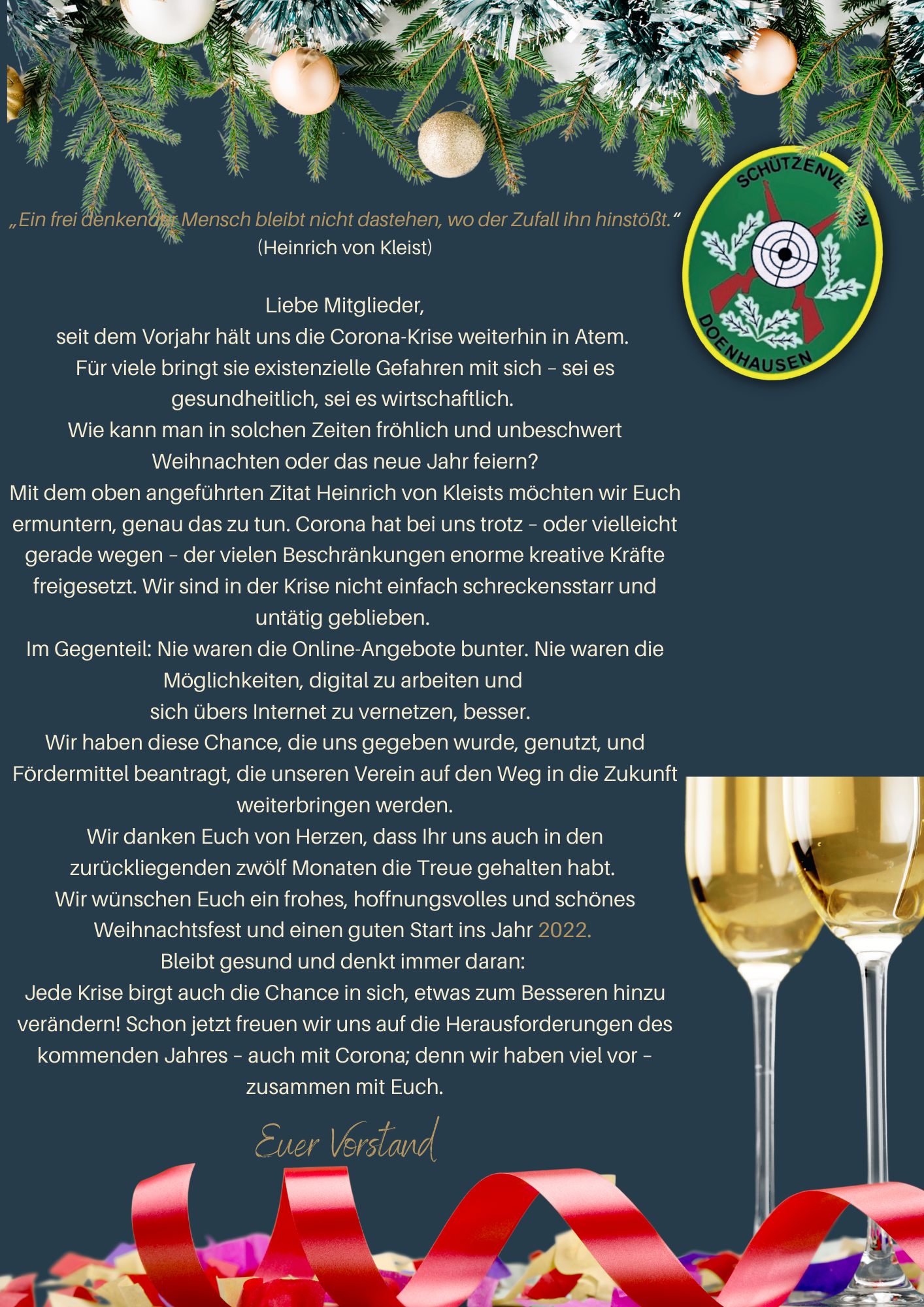 Wie in jedem Jahr verabschieden sich alle Doenhauser Abteilungen (Spielmannszug, Bogen,