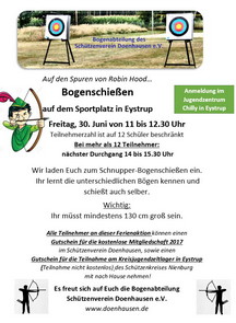 Zum ersten Mal haben die Doenhauer zur Ferienspaßaktion die Sportart Bogen angeboten. Zehn Schüler zwischen
