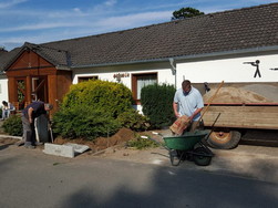 Die Vorderfront des Schützenhauses soll sich verändern, das haben sich zwei junge Mitglieder des