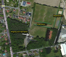 Der Bogenplatz liegt direkt auf dem Sportplatz des TSV Eystrup. Hier werden die Plätze nach Belegung durch die Fußballspieler gewählt. Der "Bogenplatz 1" kann nur genutzt werden, wenn kein Spielbetrieb auf dem Sportplatz herrscht. Bei Training und Wettkämpfen der Fußballer findet das Bogenschießen auf dem Platz 2 statt.